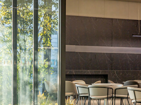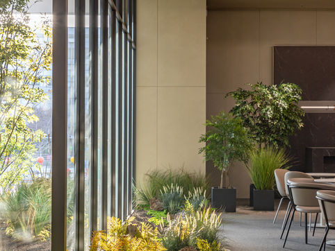 중심부에는 중정을 둘러싼 공원 같은 라운지 공간을 마련하여, 내외부가 소통하고 자연광이 스며드는 휴게 환경을 조성했습니다. 시민들은 이곳에서 자연 속의 여유를 누리며 브랜드의 철학과 정서를 감각적으로 공유하게 됩니다. 각 기능 공간은 정성스럽게 조성된 조경과 함께 어우러져, 마치 공동주택의 삶을 미리 체험하는 듯한 친근한 분위기를 연출합니다.